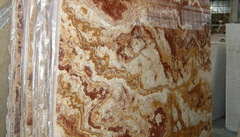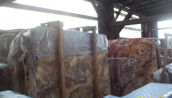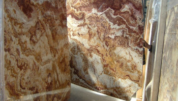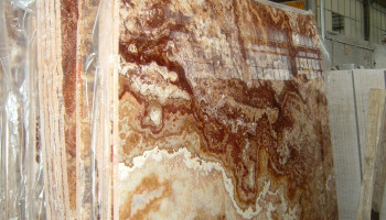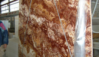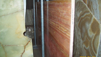 Unmassplatten Onyx Rot + Travertin rot ca. 155 m²